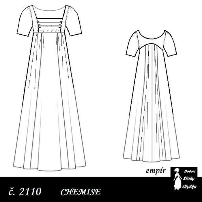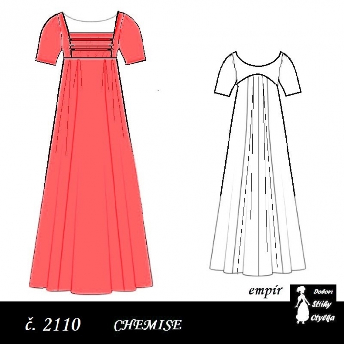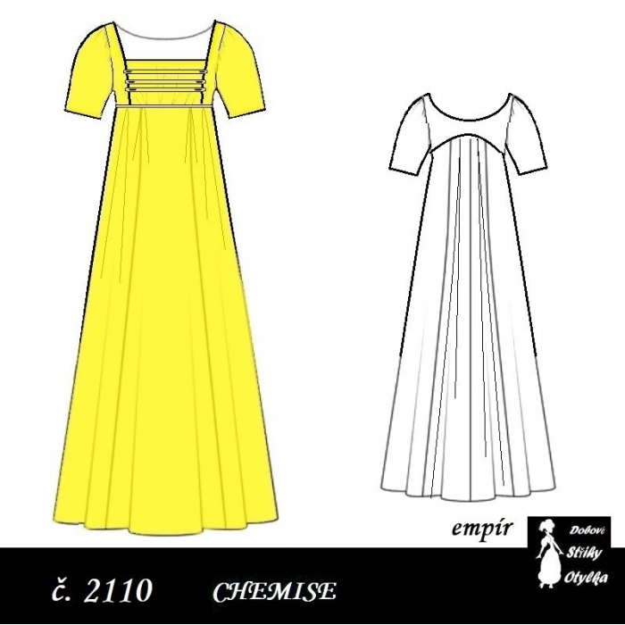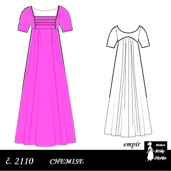 empírové chemise tj. svrchní šaty s krátkými nabíranými rukávy