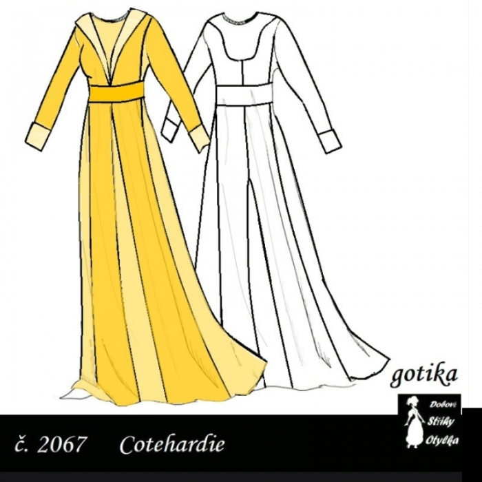 COTTE obléká se na spodní košili tzv. oplečí, sukně sahá až k zemi, vzadu je prodloužena do vlečky. V pase je oděv volný, přes boky často přepadá volný ozdobný pás. Šněrování se stává při úzkém šatu nutností a objevuje se v přední části živůtku