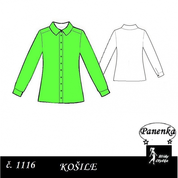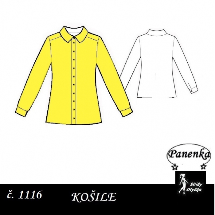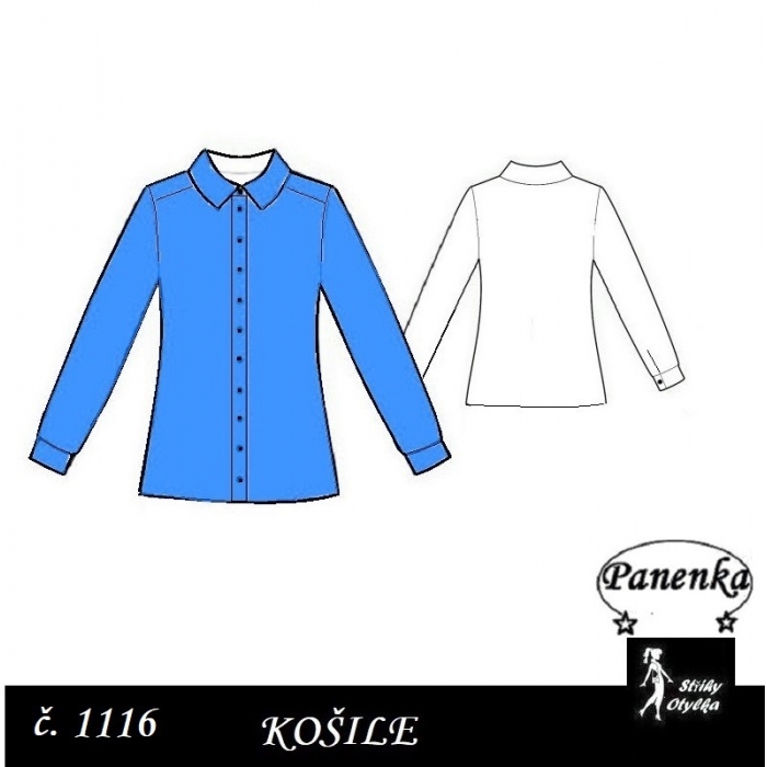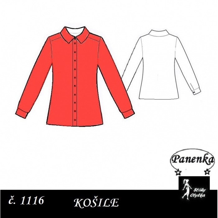 jednoduchý střih halenky s dlouhými rukávy, zapínání je na knoflíček