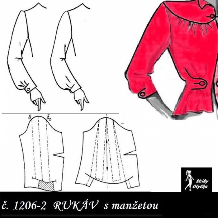 jednodílný střih na delší rukáv