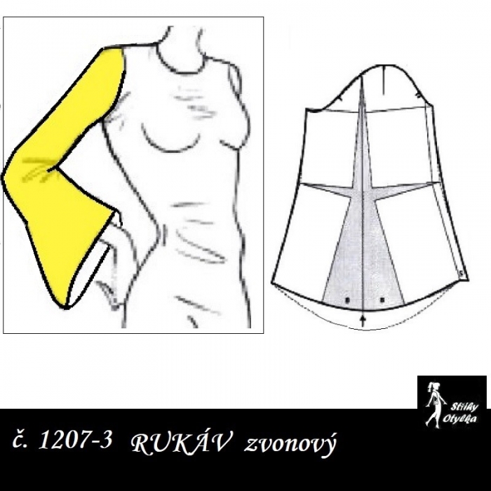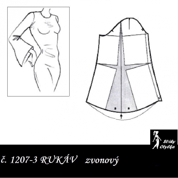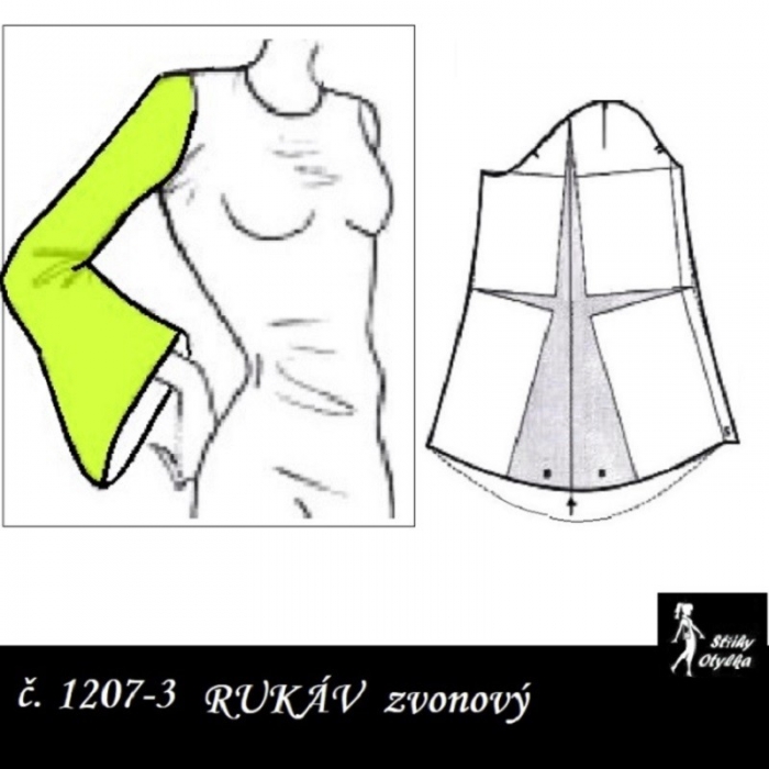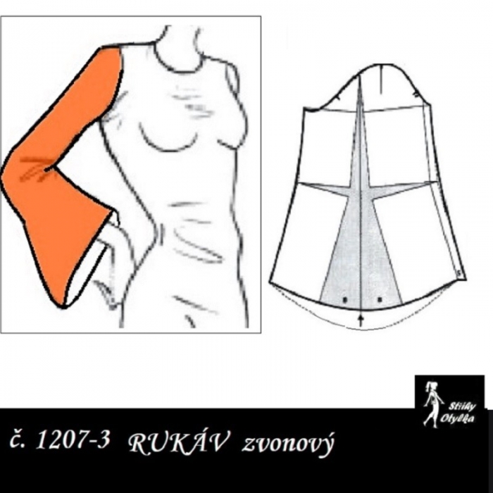 jednodílný střih na KRÁTKÝ nabíraný rukáv
