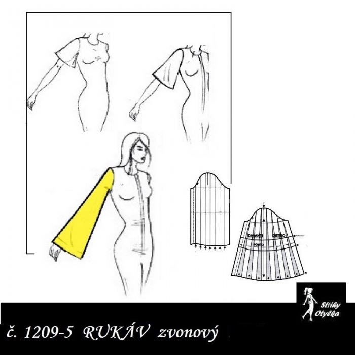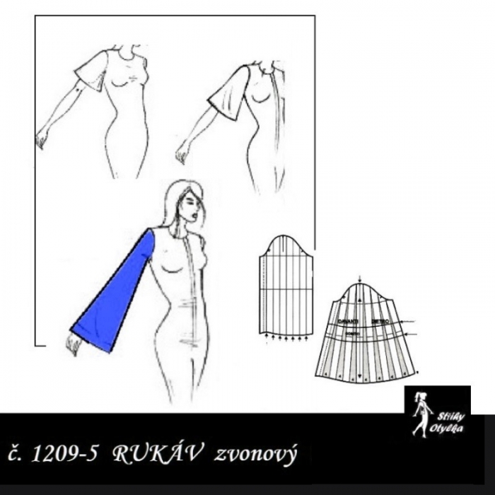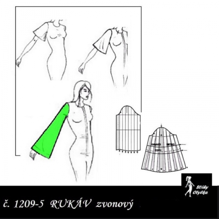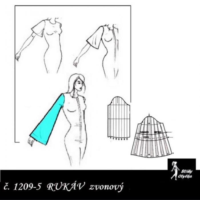 střih na dlouhý rukáv dvoušvový, s přeneseným švem na PD rukávu