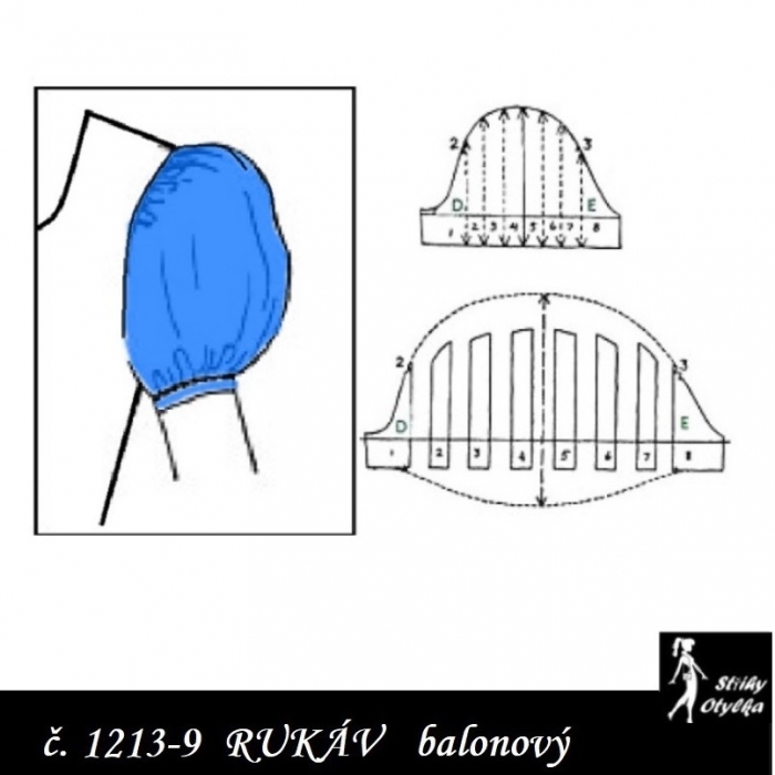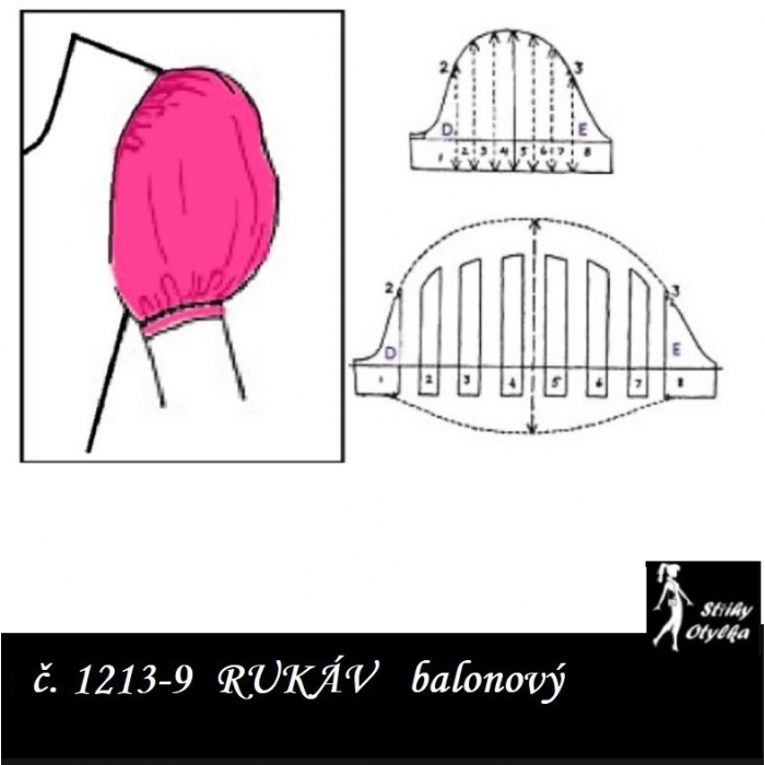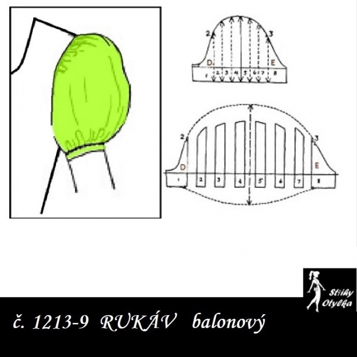 jednodílný střih na KRÁTKÝ nabíraný rukáv