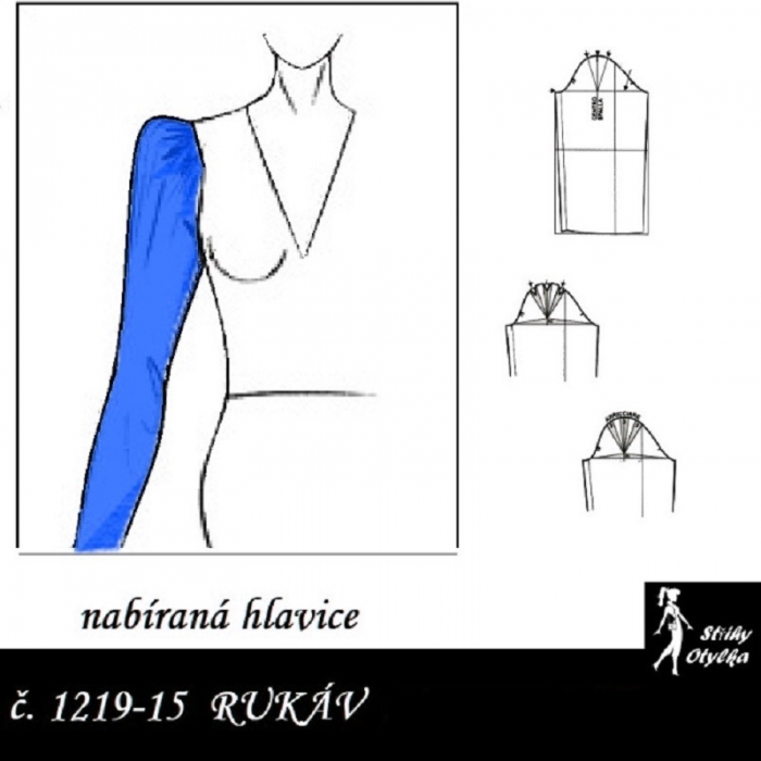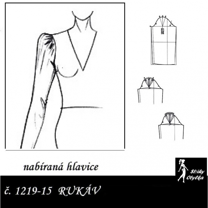 jednodílný střih na KRÁTKÝ nabíraný rukáv