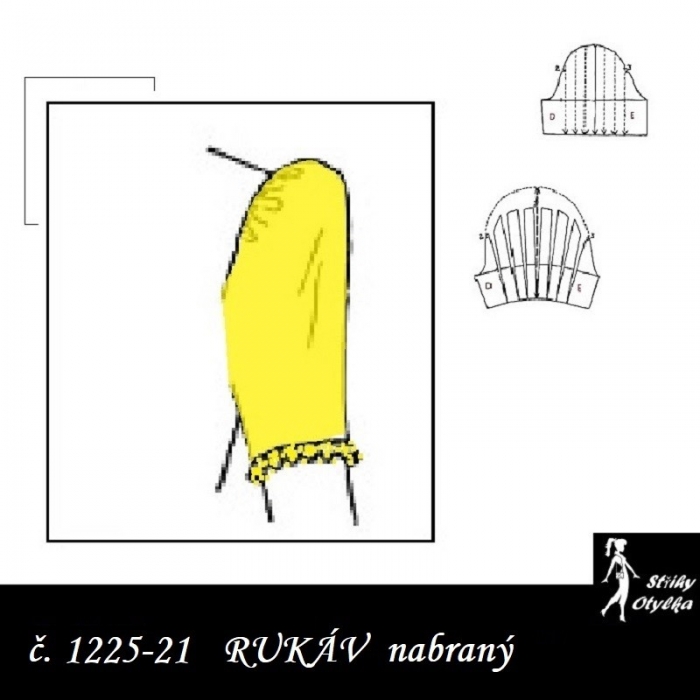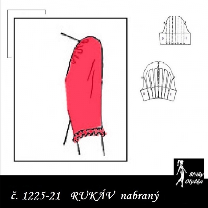 jednodílný střih na krátký nabíraný rukáv