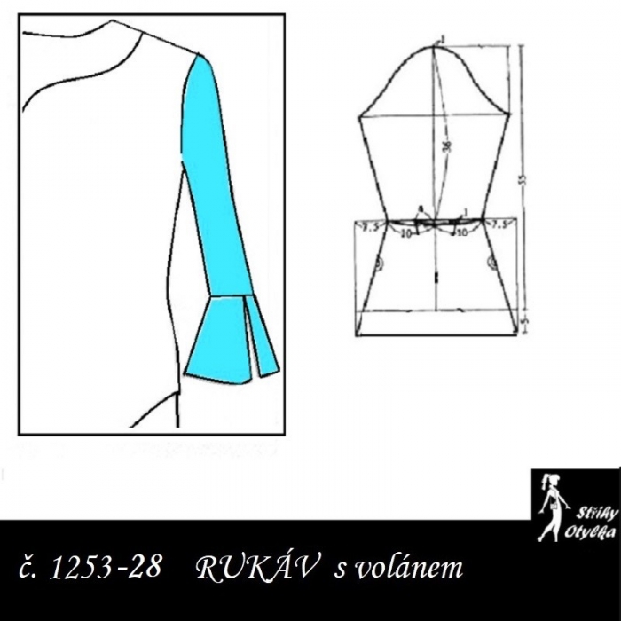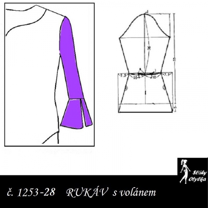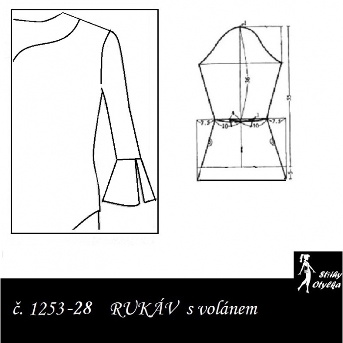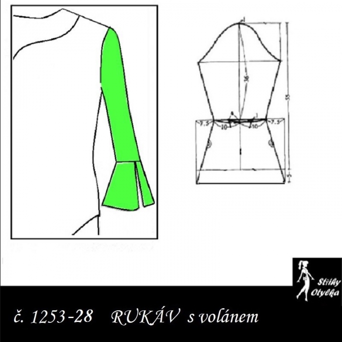 střih na dlouhý rukáv dvoušvový, s přeneseným švem na PD rukávu