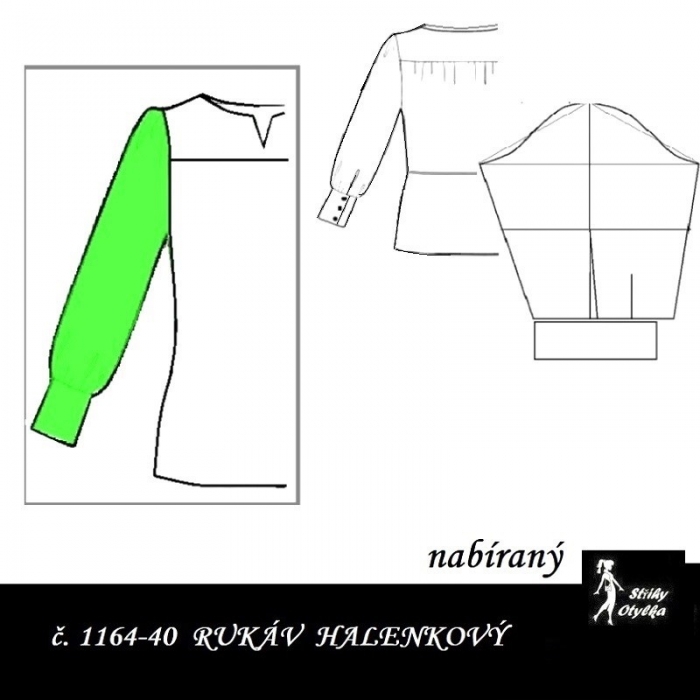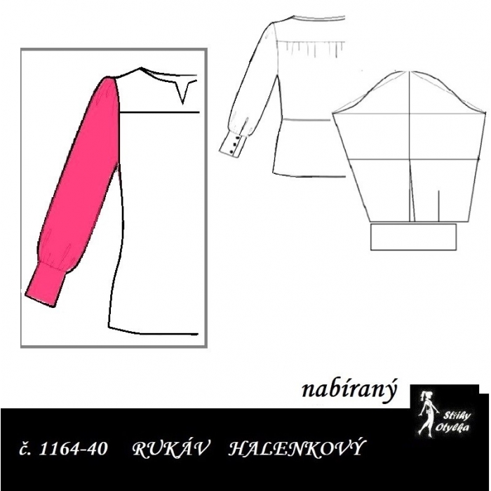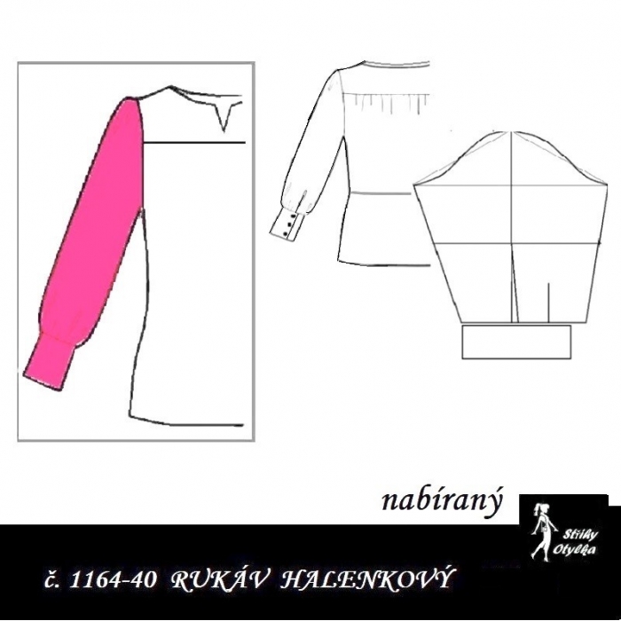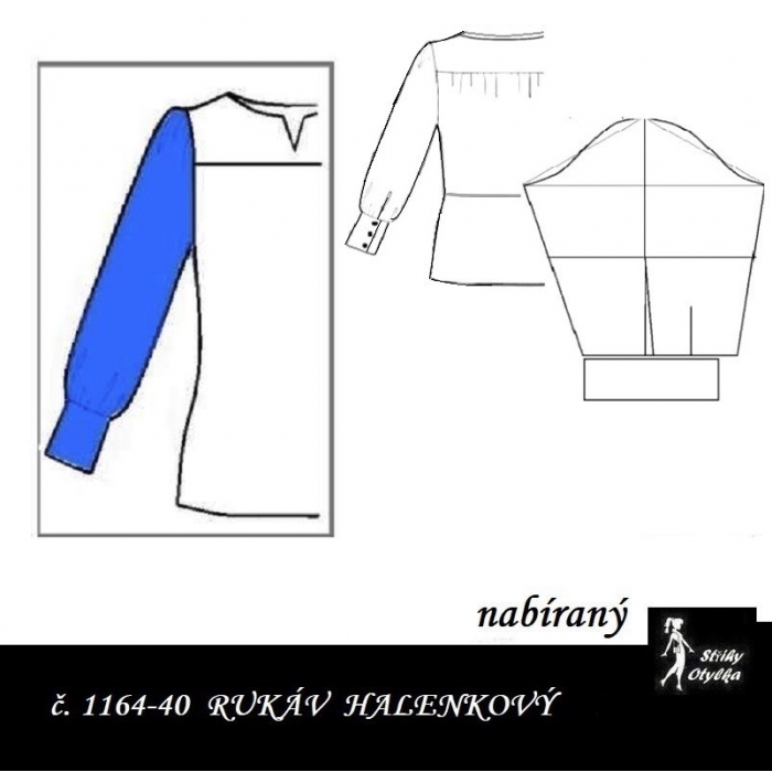 střih na dlouhý rukáv dvoušvový, s přeneseným švem na PD rukávu