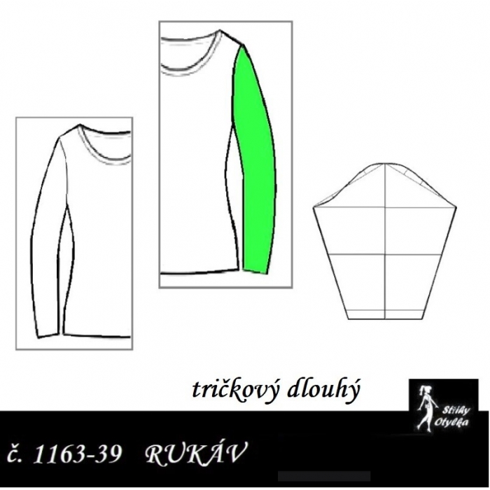 střih na dlouhý rukáv dvoušvový, s přeneseným švem na PD rukávu