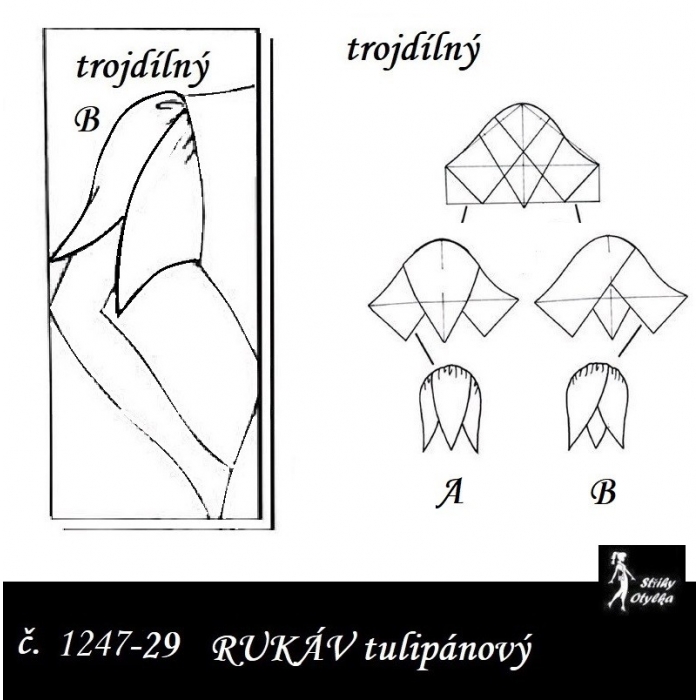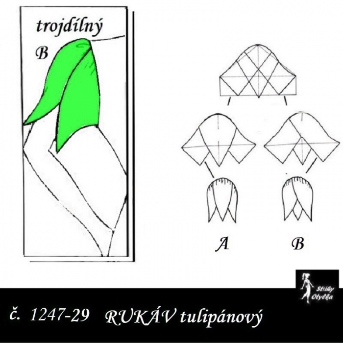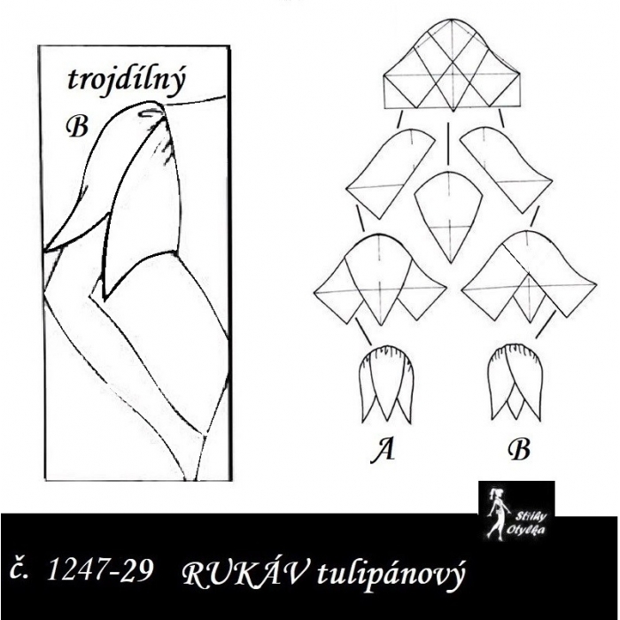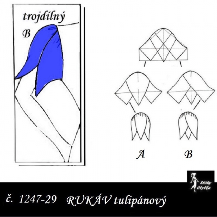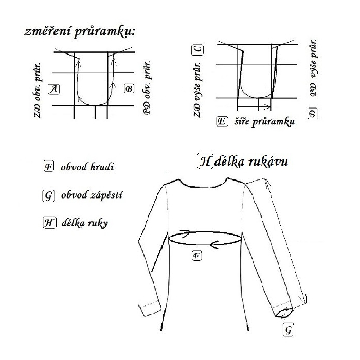 střih na dlouhý rukáv dvoušvový, s přeneseným švem na PD rukávu