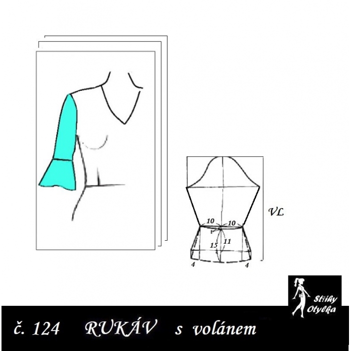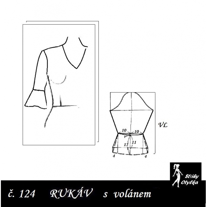 dvoudílný střih na DLOUHÝ rukáv s vysokou manžetou