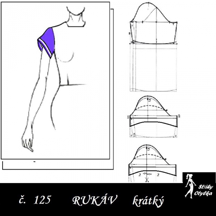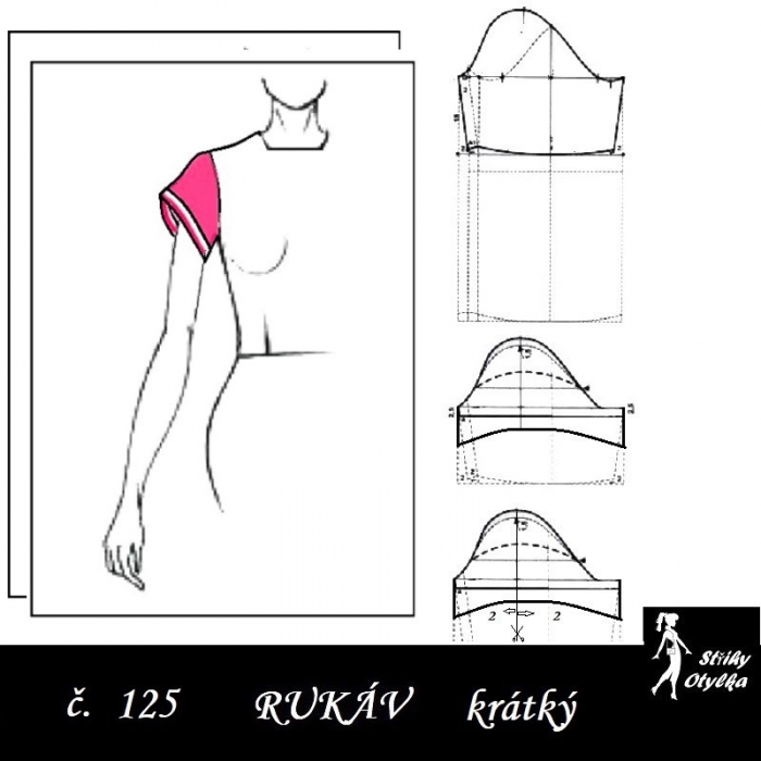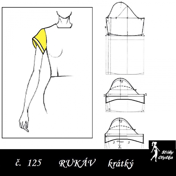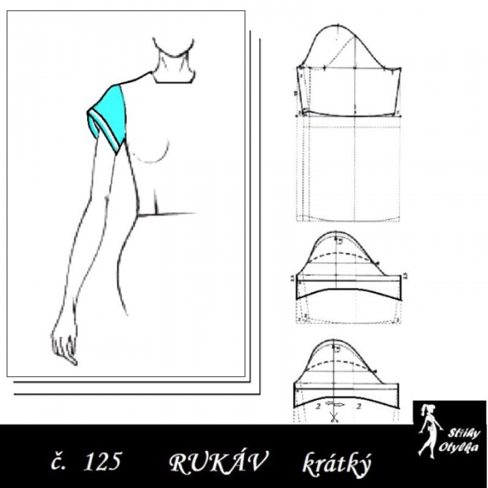 jednodílný střih na KRÁTKÝ nabíraný rukáv