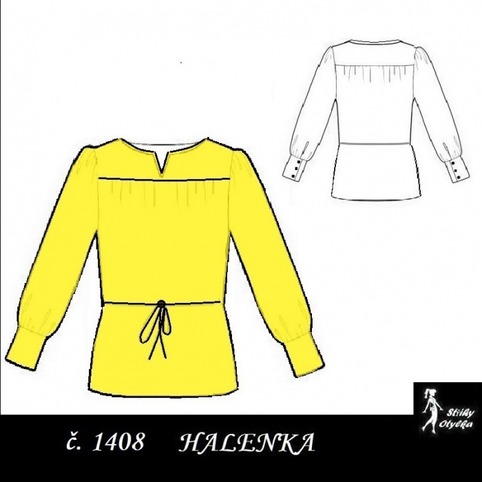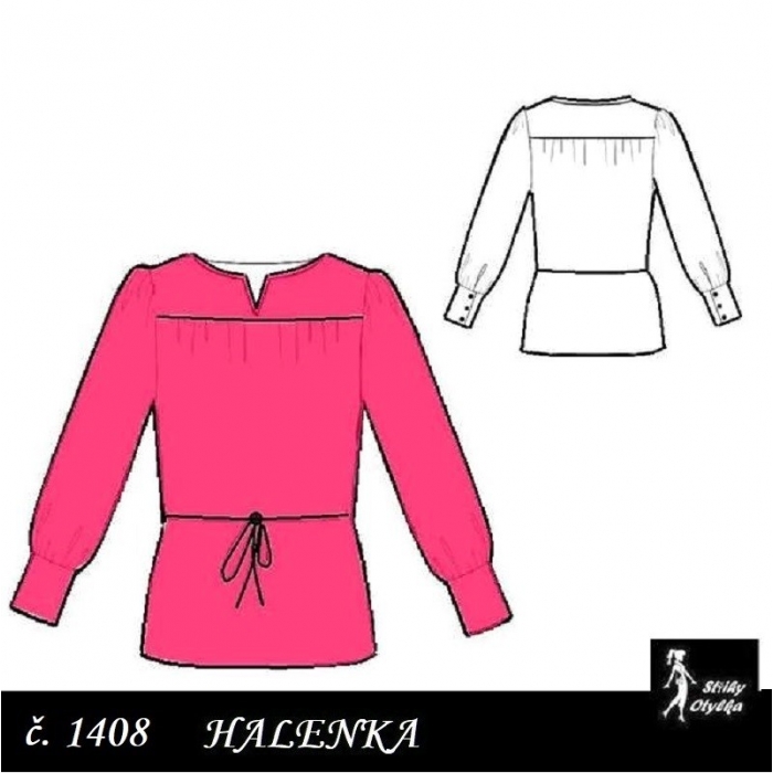 zajímavá moderní halenka se zapínáním na krytý zip, v pase zvýrazněná zapínáním na pásek vychází z tradice klasických prvorepublikových modelů