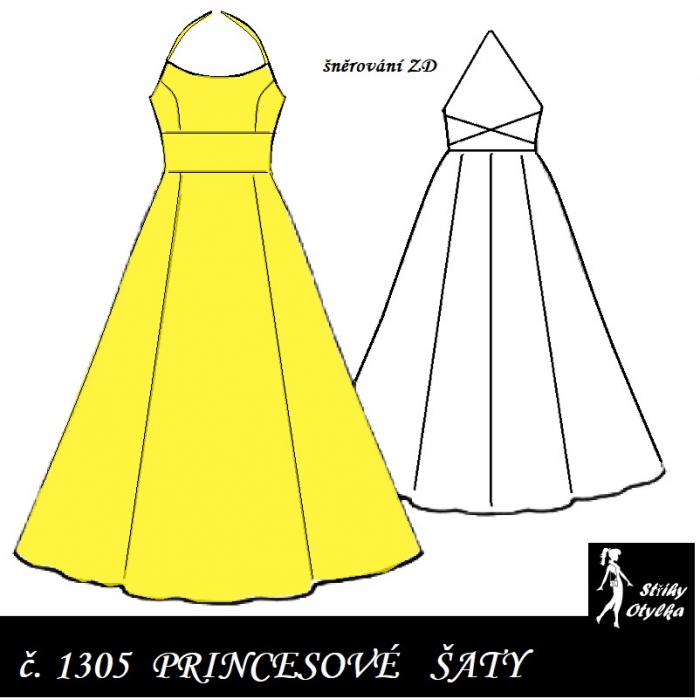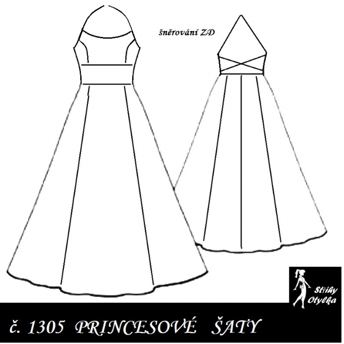 Papírový střih princesových šatů obdržíte včetně základního návodu na šití