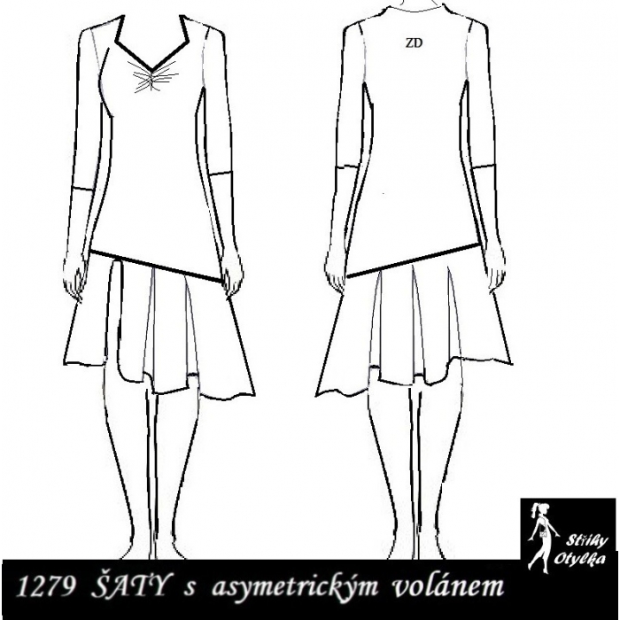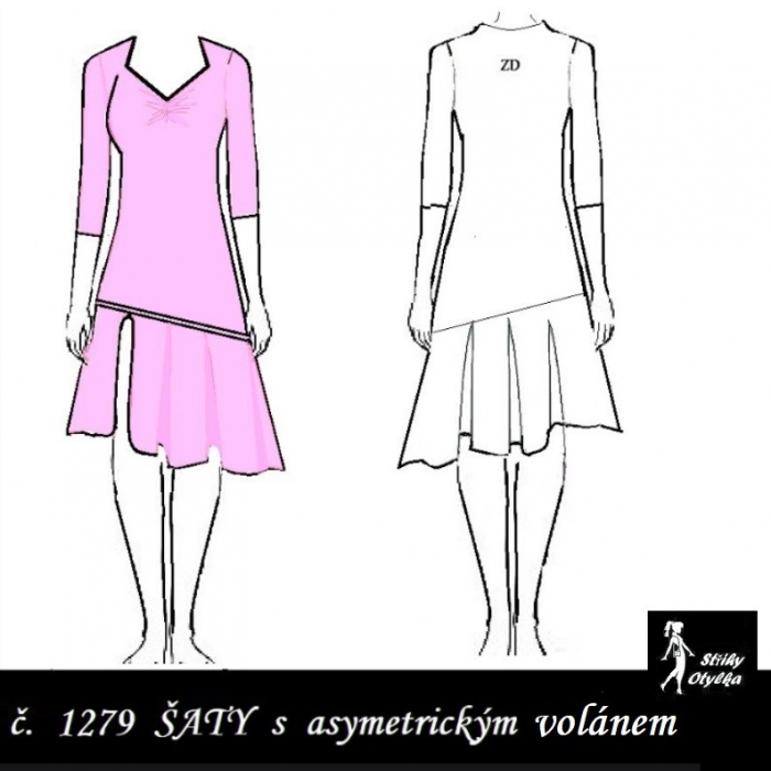 Papírový střih na dámské šaty s tulipánovou sukní s klíny i se základním návodem na šití