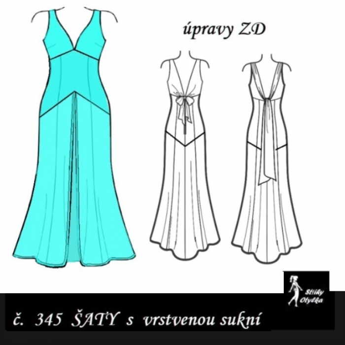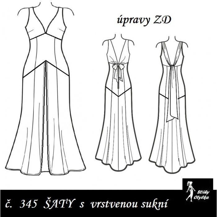 Návod na šití a papírový střih plesových nebo svatebních šatů se zavinovací sukní