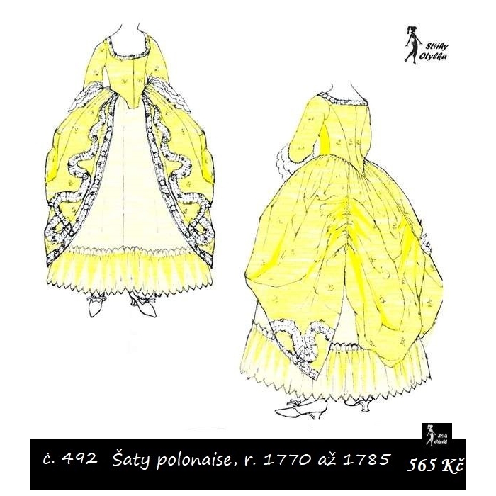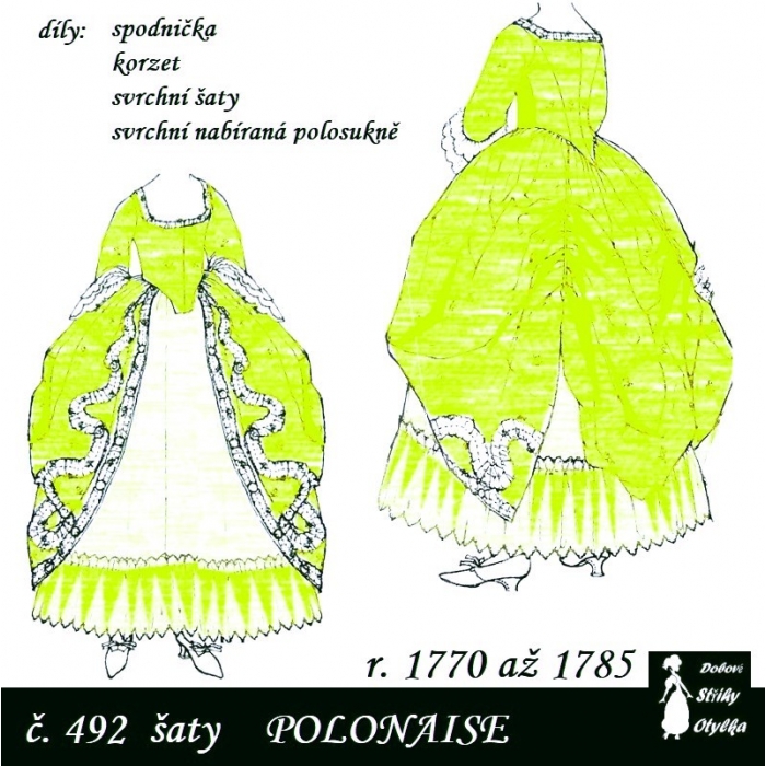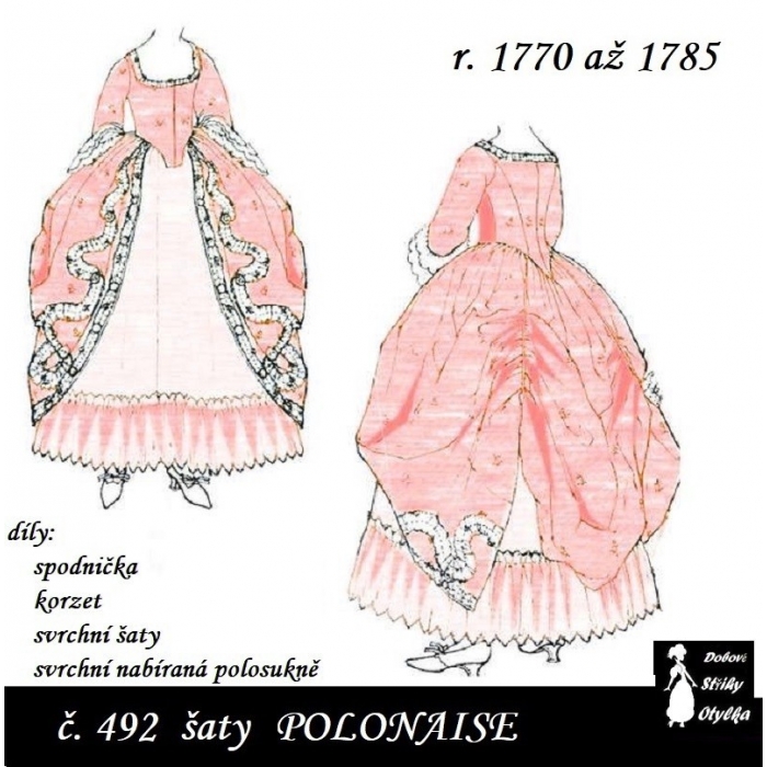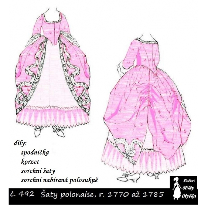 velká krinolína polonaise, r. 1770 až 1785, otevřené šaty