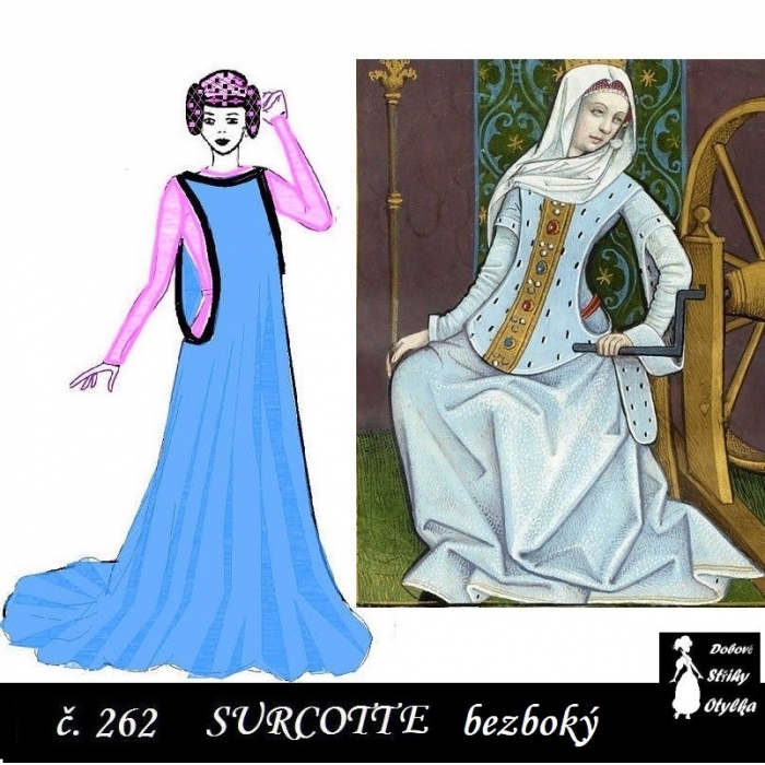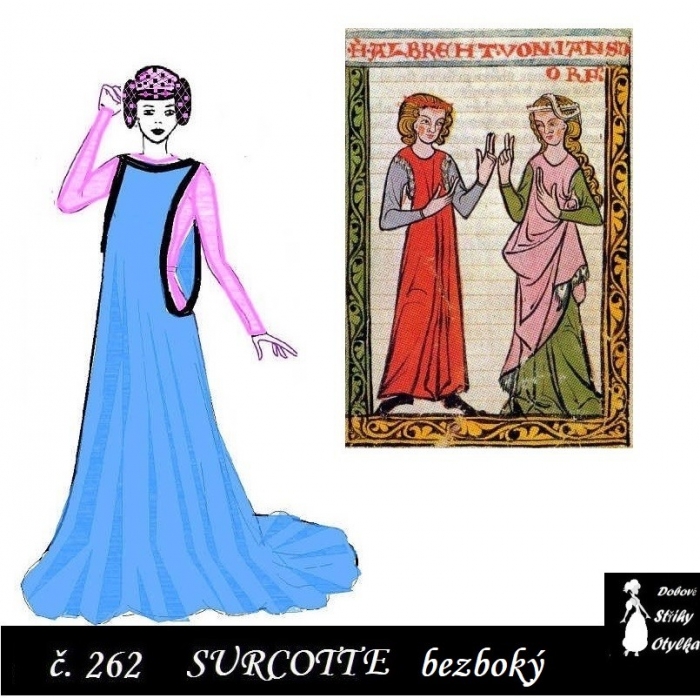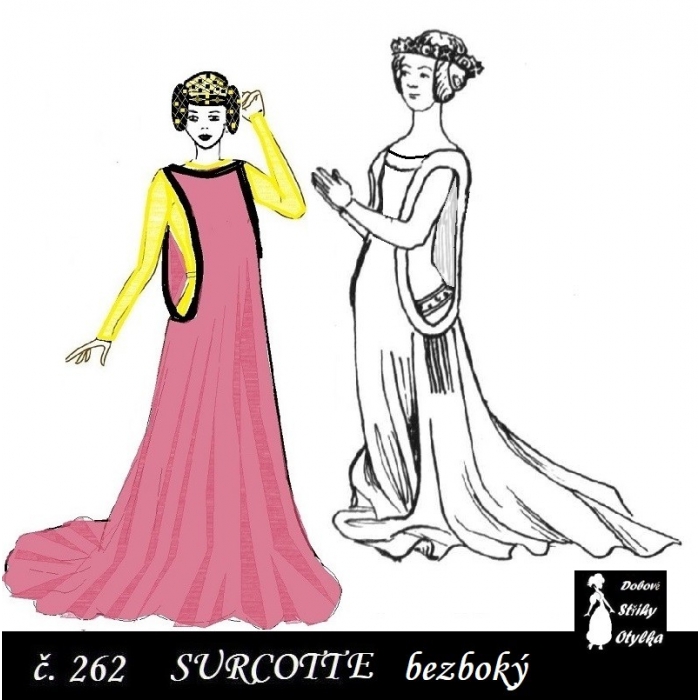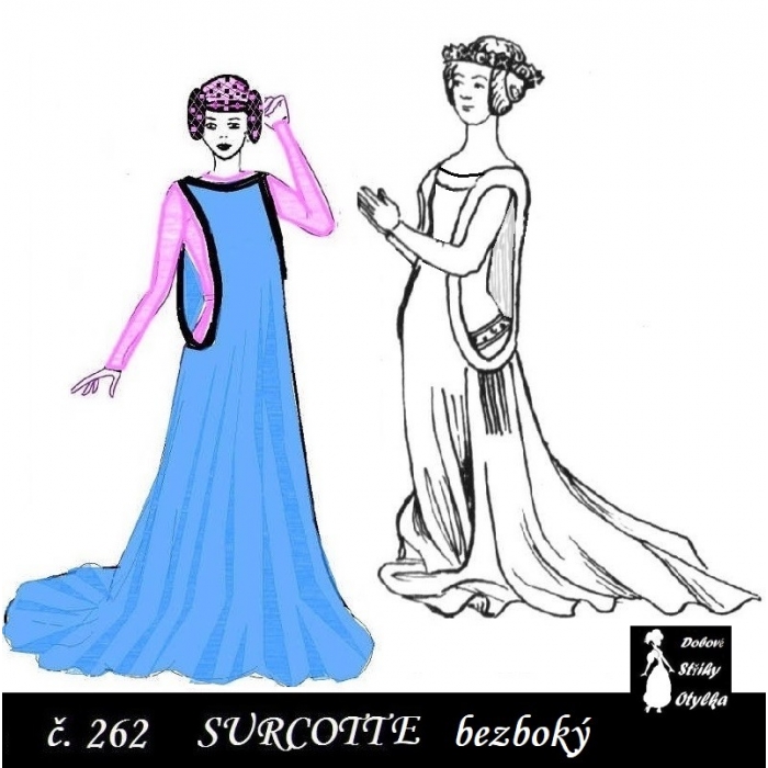 Vypasovaný dámský oděv nošený jak samostatně, tak s pachy (dlouhými rukávy), nebo pod bezbokým šatem (jakousi šatovkou s hlubokými průramky). Pod úrovní pasu mohl mít otvoru sloužící pro nadzvedávání sukně nebo k dosažení na předměty zavěšené na opasku pod šaty. Pod surcottem se rozhodně nosila ještě spodní dlouhá košilka.
