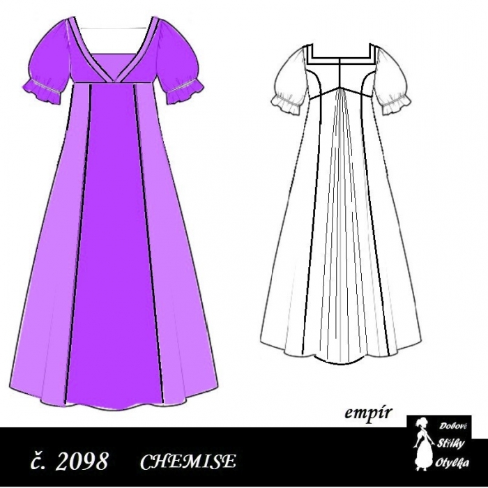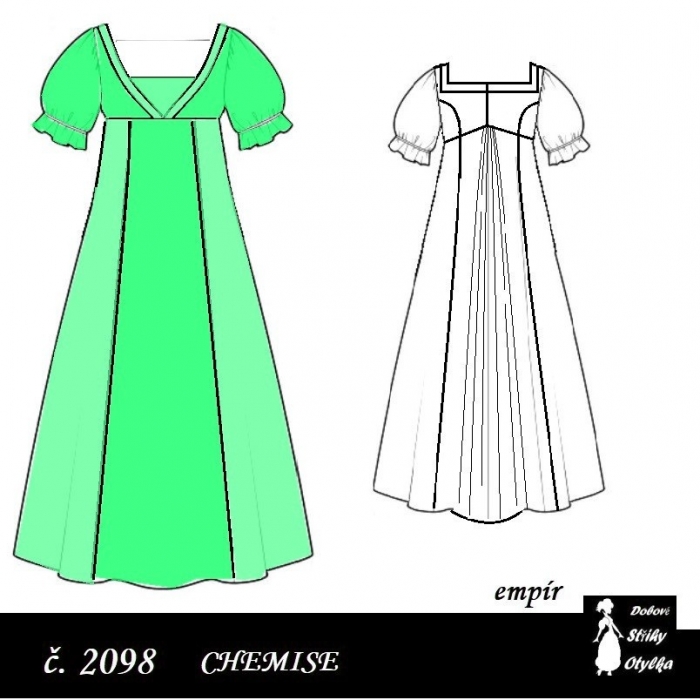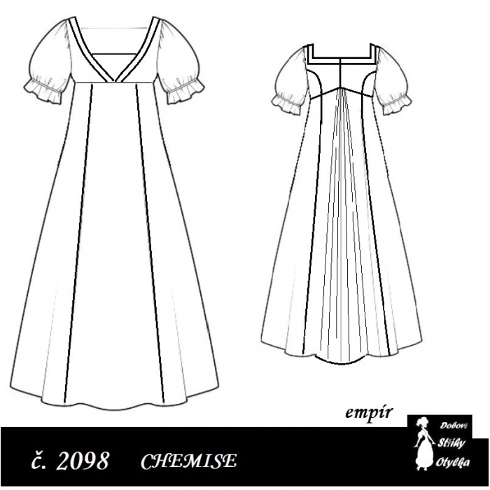 empírové chemise tj. svrchní šaty s krátkými nabíranými rukávy