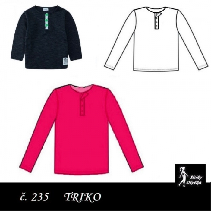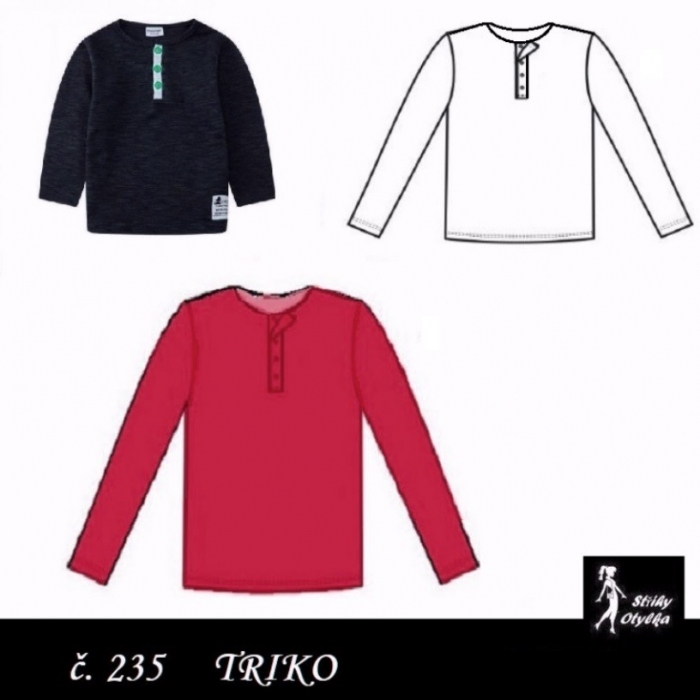 Střih nazývaný polokošile nebo polotričko z úpletu.
